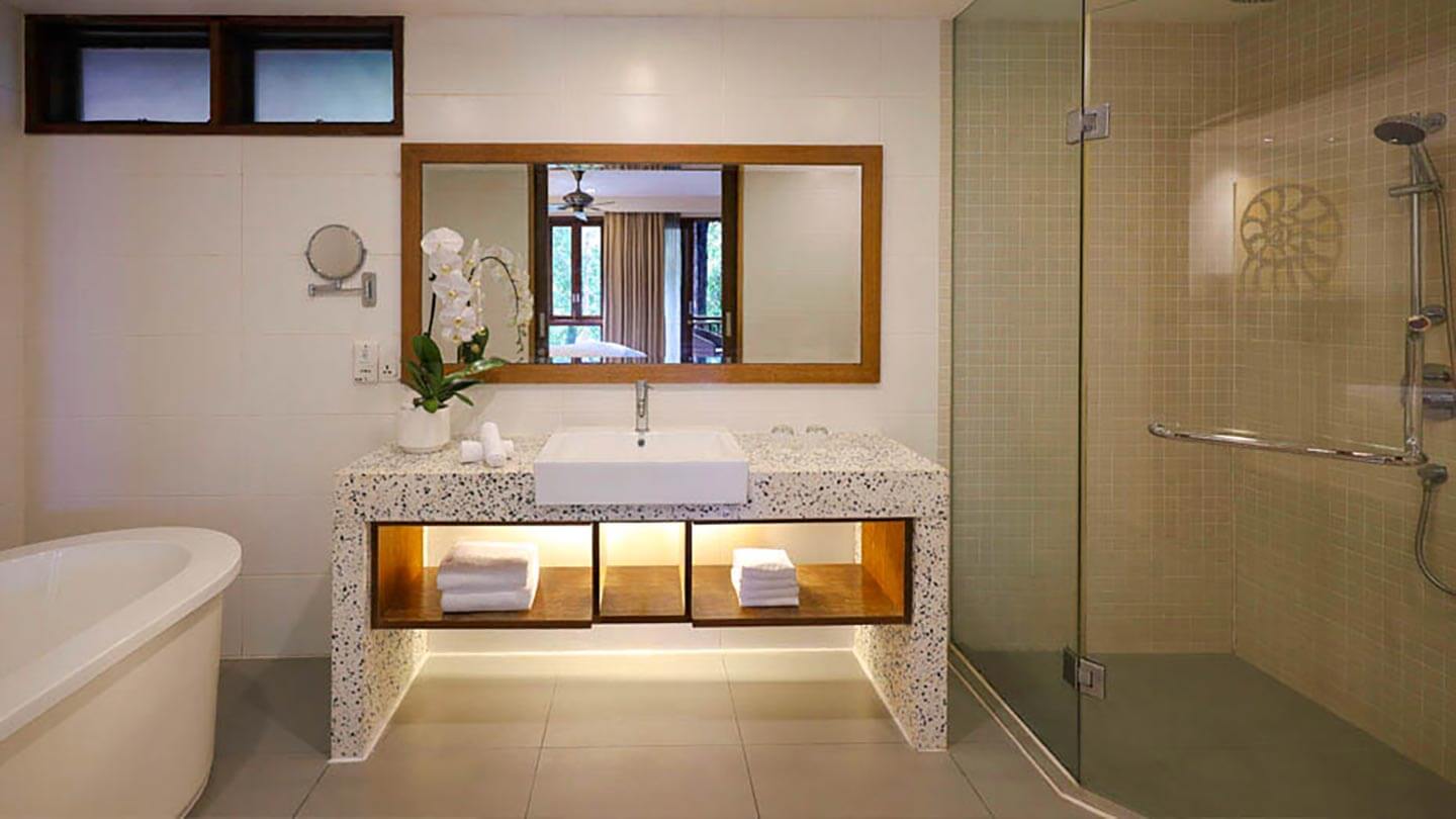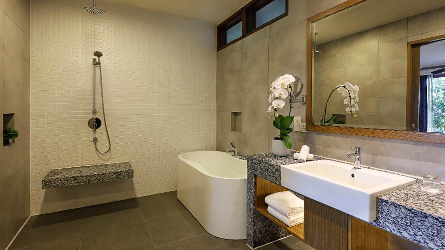 Die gemütliches Premier Chalet On Water thront malerisch auf Stelzen über dem Wasser und bietet einen ungestörten Blick über die Andamanensee. Es besticht durch ein erholsames, luftiges Ambiente, während die üppig grüne Umgebung unseres Resorts Sie in eine Oase der Ruhe hüllt und Ihnen perfekte Entspannung ermöglicht.