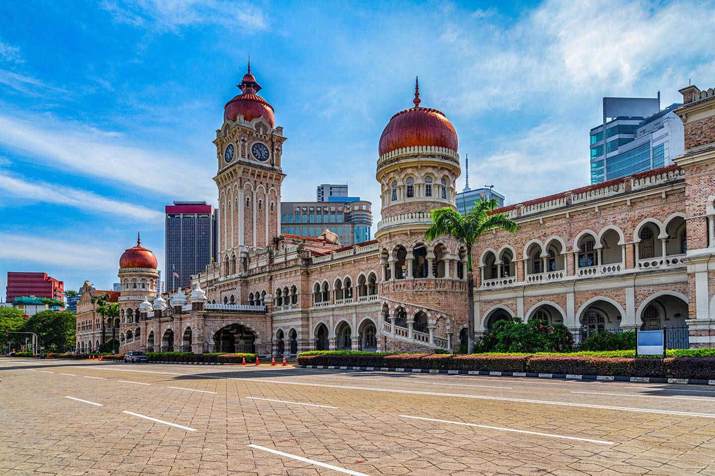 Auf dieser halbtägigen Stadtrundfahrt tauchen wir ein in die vielfältige, multikulturelle Atmosphäre von Kuala Lumpur. Zunächst besuchen wir die Masjid Negara, eine der größten und bedeutendsten Moscheen des Landes, und erleben die ruhige, spirituelle Stimmung dieses modernen Wahrzeichens. Anschließend halten wir an den Petronas Twin Towers und haben Zeit, die beeindruckende Silhouette der Zwillingstürme zu fotografieren. Auf der Weiterfahrt passieren wir das im maurischen Stil erbaute Federal Court, den alten Bahnhof mit seiner eindrucksvollen mohammedanischen Architektur, den im Tudor-Stil gestalteten Cricket Club sowie den Königspalast. Den Abschluss bildet der Besuch des Thean-Hou-Tempels in Robson Heights, einer der größten chinesischen Tempel Südostasiens, der der Meeresgöttin Thean Hou, Schutzgöttin der Hainan-Gemeinschaft, gewidmet ist und mit seiner sechsstöckigen Architektur und den detailreichen Verzierungen einen faszinierenden Einblick in die chinesische Kultur Malaysias bietet.