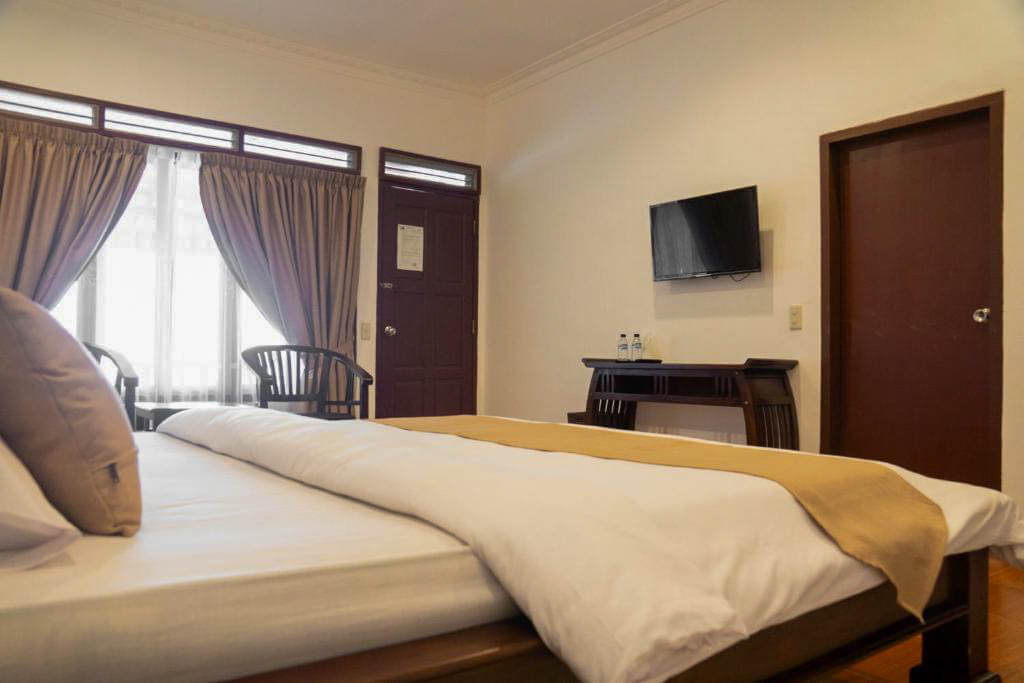 Die ca. 20 qm grossen Zimmer im Grand Mutiara Hotel Berastagi bieten mit ihrem Balkon einen ruhigen Blick auf die umliegende Vegetation. Sie verfügen über Klimaanlage, TV mit internationalen Kanälen, Kaffee‑ & Teezubereiter sowie ein modernes Bad mit Föhn.