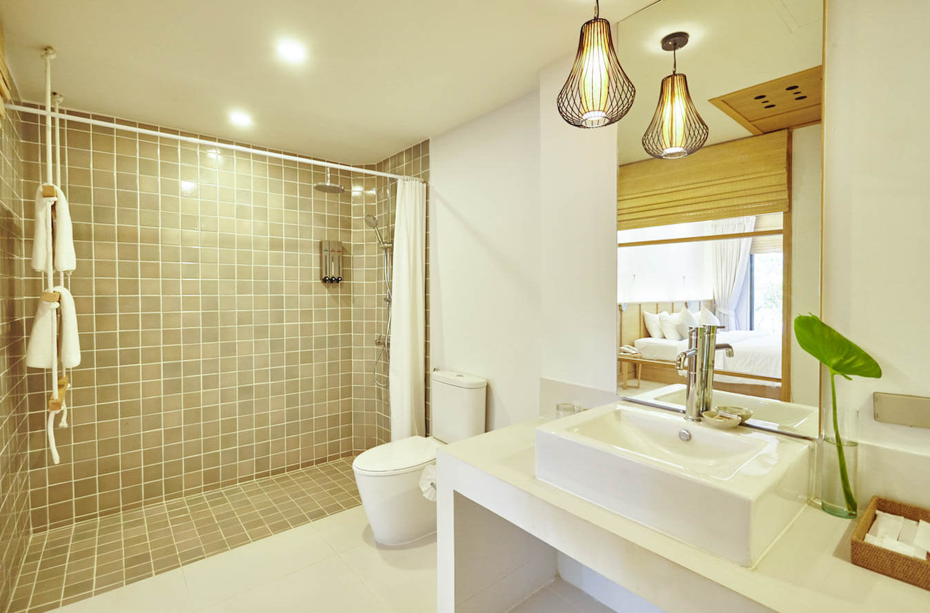 Das Schlafzimmer der Deluxe Villa ist ausgestattet mit einem großen Kingsize-Bett, 49-Zoll-LCD-TV, Safe, Deckenventilator und Klimaanlage. Im Wohnzimmer stehen ein großes Sofa, Minibar, LCD-TV, Nespresso-Kaffeemaschine und Wasserkocher (mit täglich kostenfrei aufgefülltem Tee und Kaffee), kostenloses Mineralwasser (tägliche Auffüllung), Deckenventilator und Klimaanlage zur Verfügung. Das Bad bietet eine Regendusche mit Warmwasser, Toilette mit Bidet, Haartrockner, kostenlose Pflegeprodukte und alles, was für einen angenehmen Aufenthalt benötigt wird.