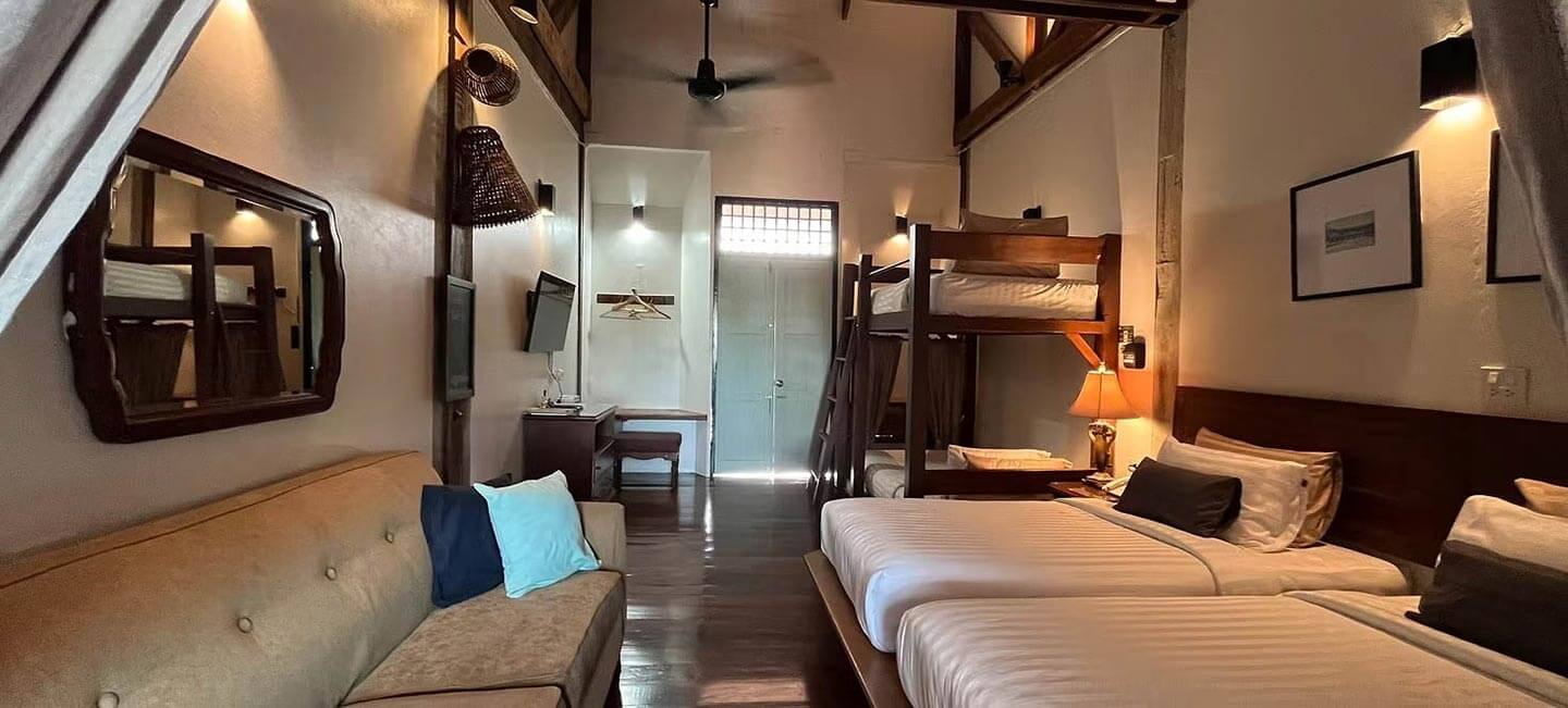 Die Zimmer Boarders's Room sind 32 qm groß und mit 2 Einzelbetten und einem Etagenbett ausgestattet.